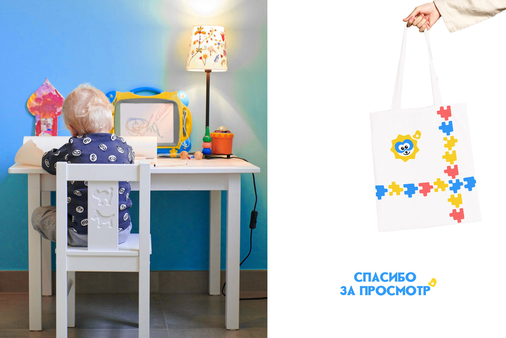 Главной идеей для фирменного стиля магазина стали разноцветная мозаика, конструктор и паззлы, которые очень хорошо развивают мелкую моторику ручек, и от которых детки всегда в восторге.